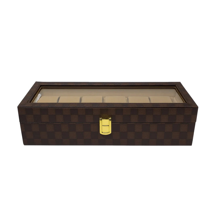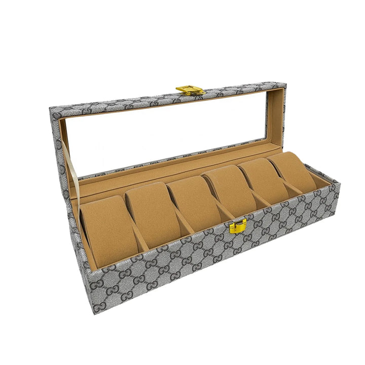 ā Premium 6-Slot PU Leather Watch Box with Glass Window