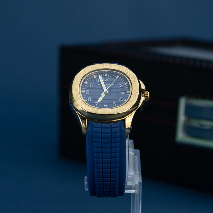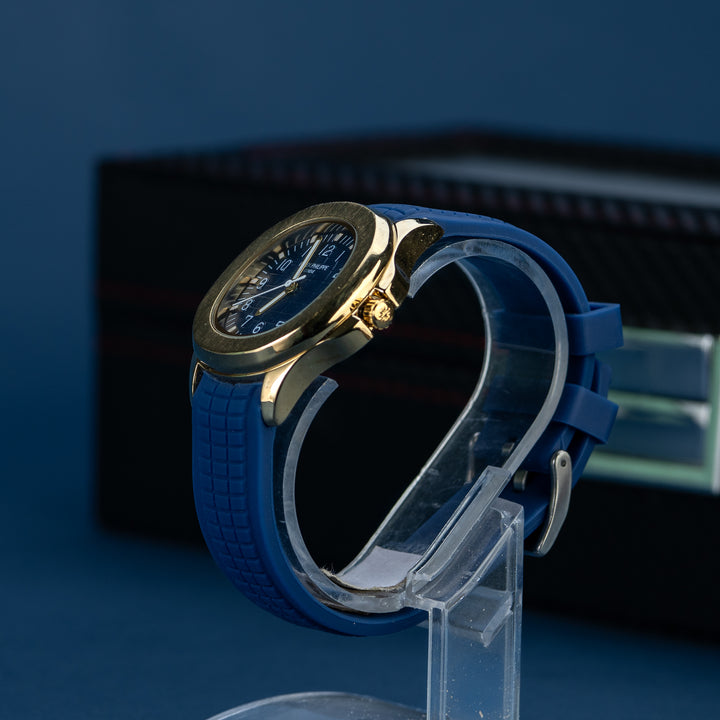 Patek Philippe -Silicon Strap Watch | Gold Dial & Blue Band (38mm)