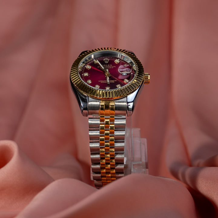 Rolex Oyster Perpetual | Datejust – Master Quality Stainless Steel Watch ( Red Dial Two Tone)