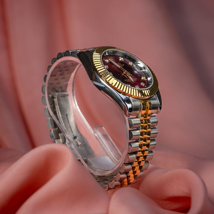 🎨 Dial Design: Elegant red dial Two Tone for a luxury aesthetic