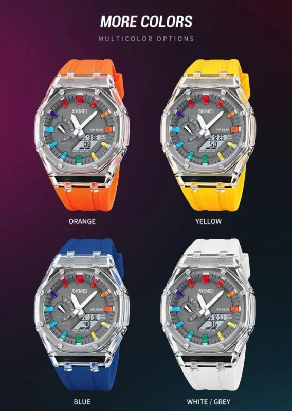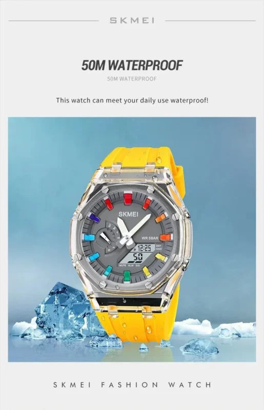 The SKMEI 2100 is built for those who love sporty yet casual design. With a 50m water resistance rating, strong resin glass, and a silica gel strap, itβs a perfect everyday companion for fitness, casual wear, and outdoor activities.